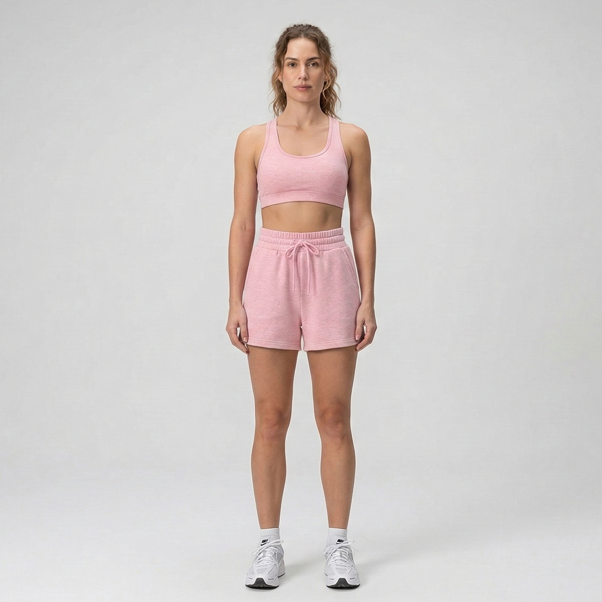 Disponível nas cores branco, cinza mescla e rosa bebê, é uma peça essencial para quem gosta de manter o visual esportivo com conforto.